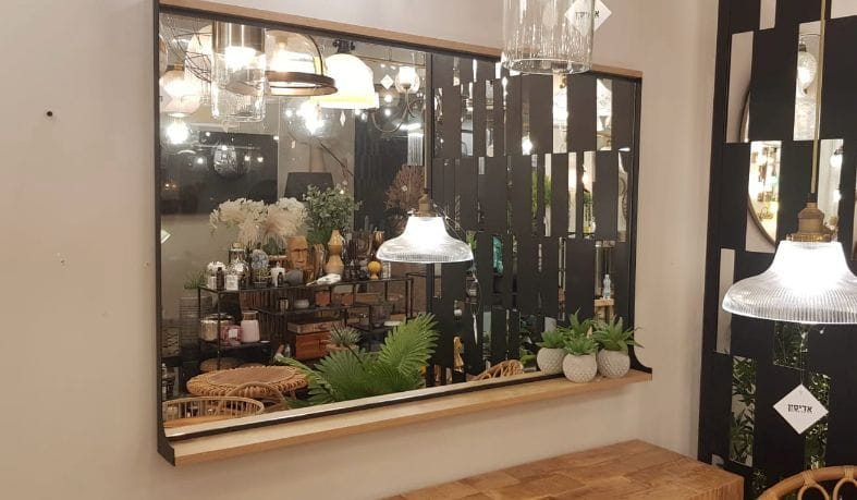 מראה בשילוב מתכת ועץ
